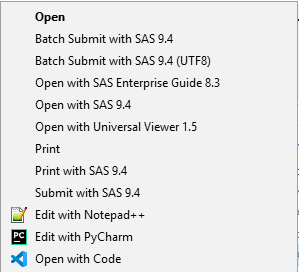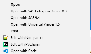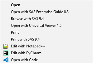 | Open with Universal Viewer 1.5 | Opens in the SAS Universal Viewer (use VS Code or Notepad++ instead !) |